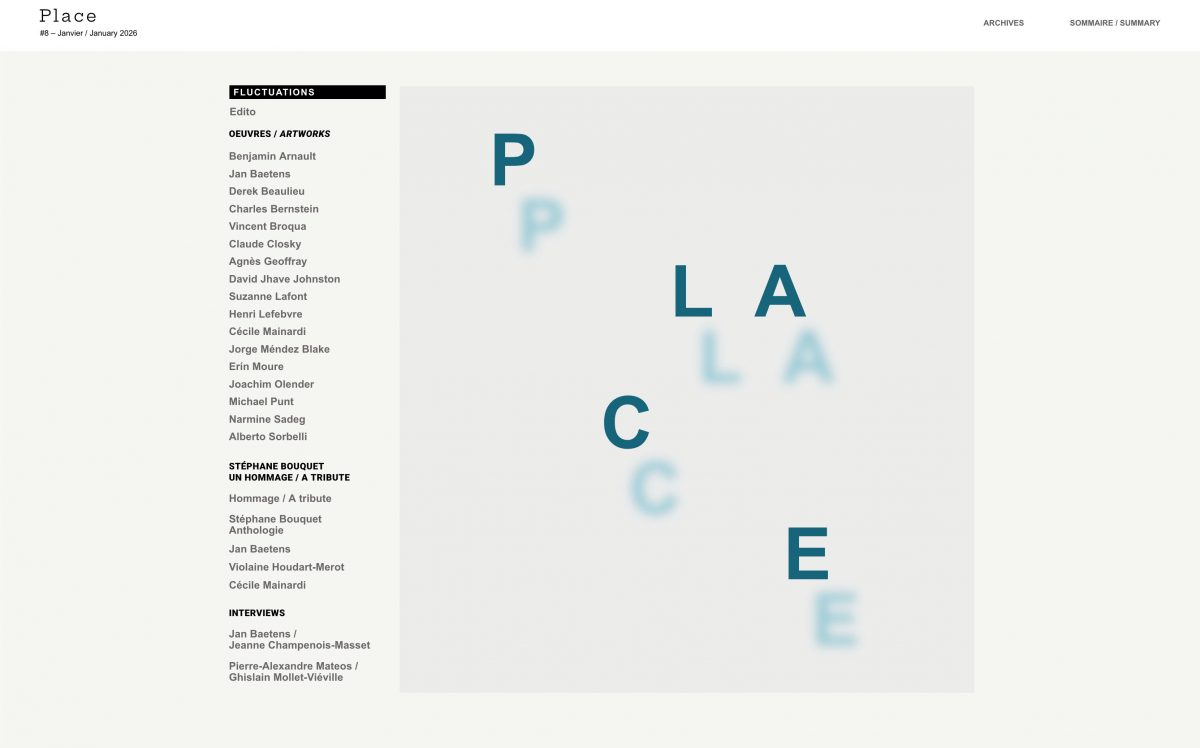 Place is an art magazine published by artists. It also welcomes art theorists. Place publishes a regular issue and four special issues per year.
