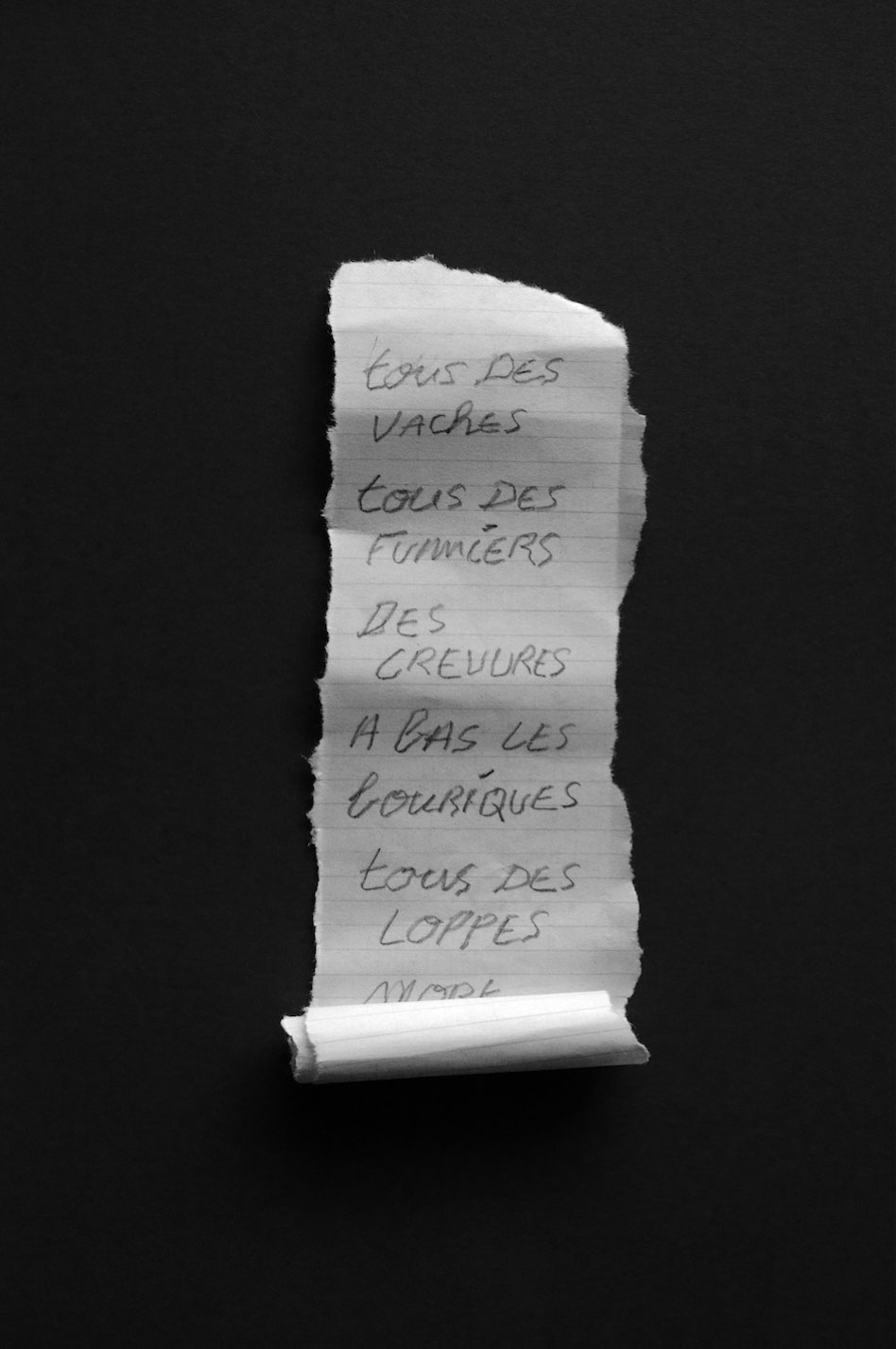 Cette série rejoue des écritures manuscrites de Biftons, ces messages de passage dans les lieux de détention. Les textes de ceux-ci émanent des billets interdits que s’échangeaient les jeunes filles enfermées dans les écoles de préservation, entre fin XIXe et milieu XXe.