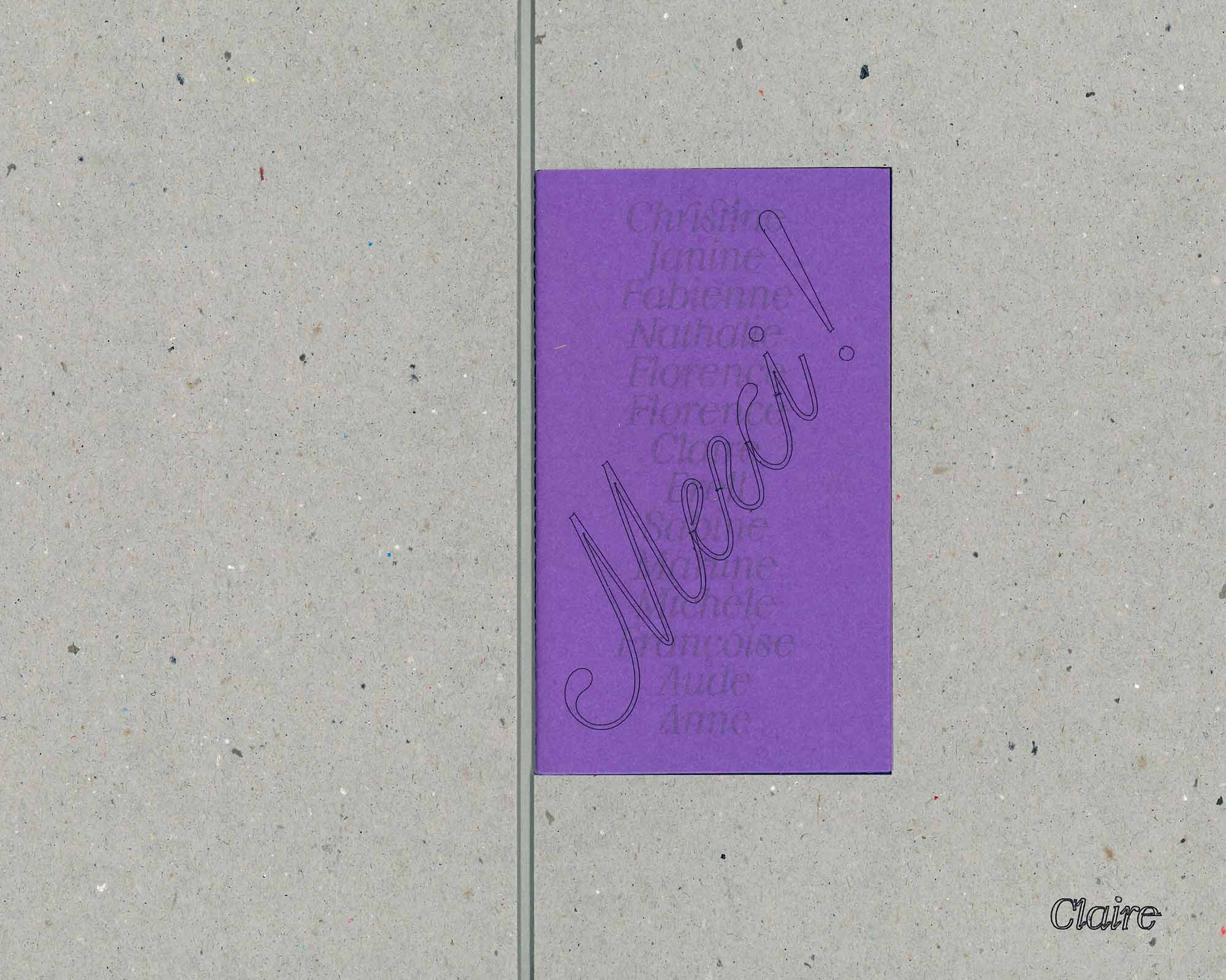 14, 15 : Merci!, étui et livret composé avec les fontes Louise et Homoneta, 2024