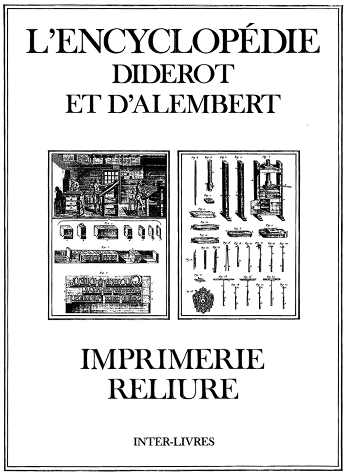 1 : L’Encyclopédie. [29], Imprimerie, reliure : [recueil de planches sur les sciences, les arts libéraux et les arts mécaniques, avec leur explication], 1751-1780, source gallica.bnf.fr/