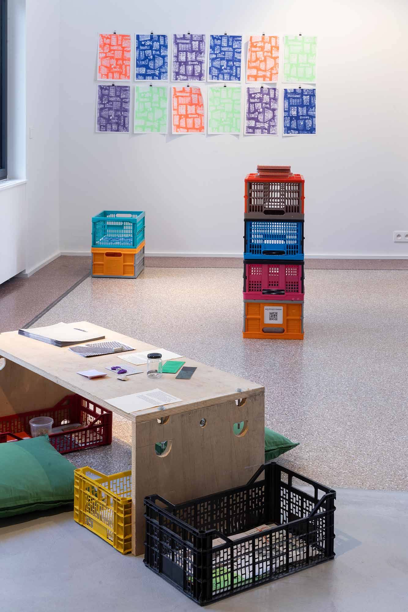 Quand à travers mes macules, que je décide de ne pas jeter, je perçois la possibilité de leur donner une nouvelle vie. Je réalise ainsi mon propre carton à base de ces papiers voués à être jetés. Ensuite ce carton est utilisé pour réaliser des boîtes, contenant chacune les traces de projets réalisés entre 2022 et 2024. Un contenant réalisé avec des restes de matières (ce qui reste) pour attester des gestes et d’une pratique durant deux années (ce qui restera).