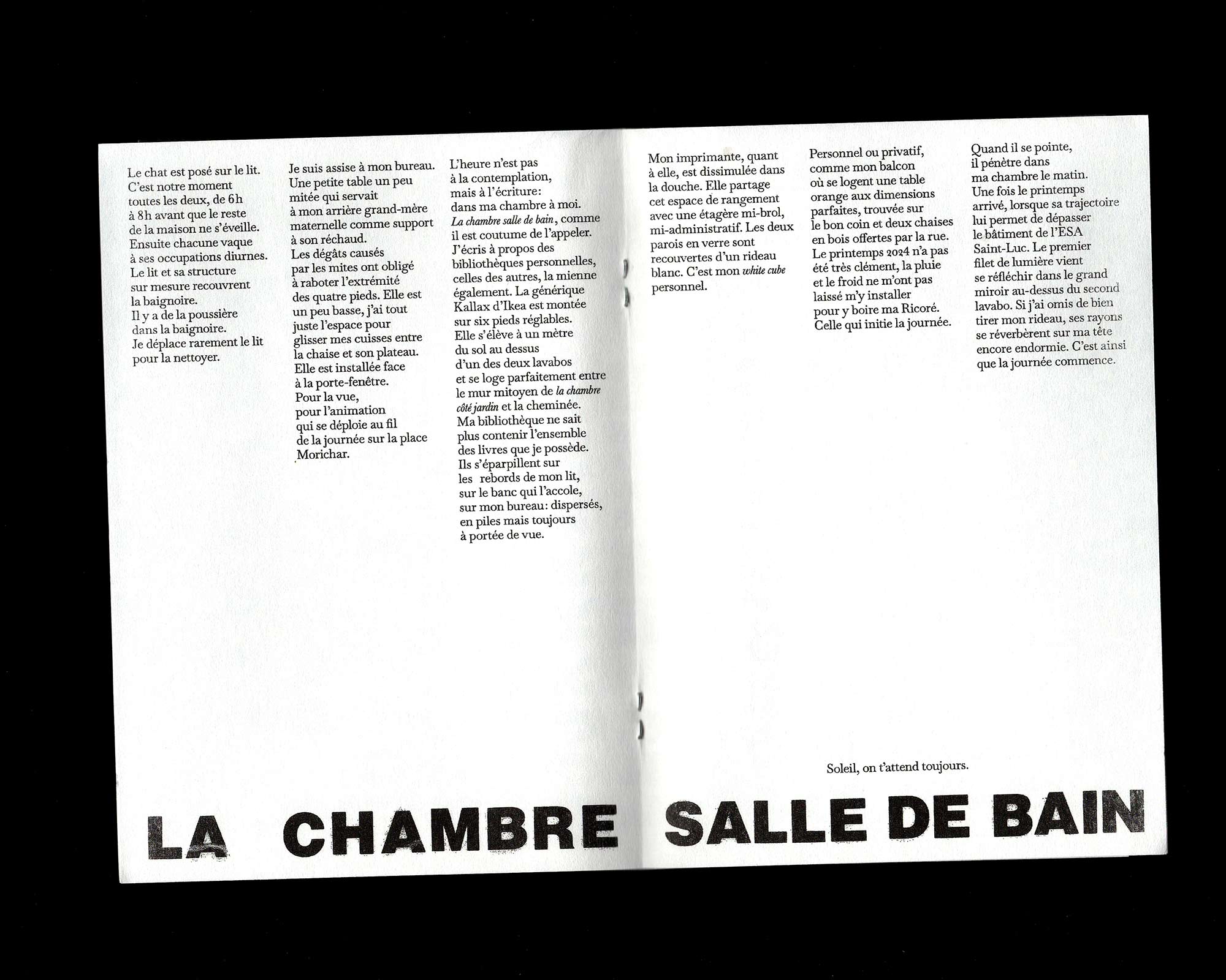 La phase d’impression est entièrement intégrée au processus de conception, dans la grande majorité des cas, j’imprime moi-même. Presque exclusivement aux ateliers du Toner, lieu d’impression et de microédition collaboratif et autogéré situé à Ixelles. Il dispose de trois types de machines ; risographie, laser et jet d’encre. Le choix du type d’impression se fait en fonction, de la nature des contenus, du nombre de pages et des rendus escomptés ou du budget envisagé.