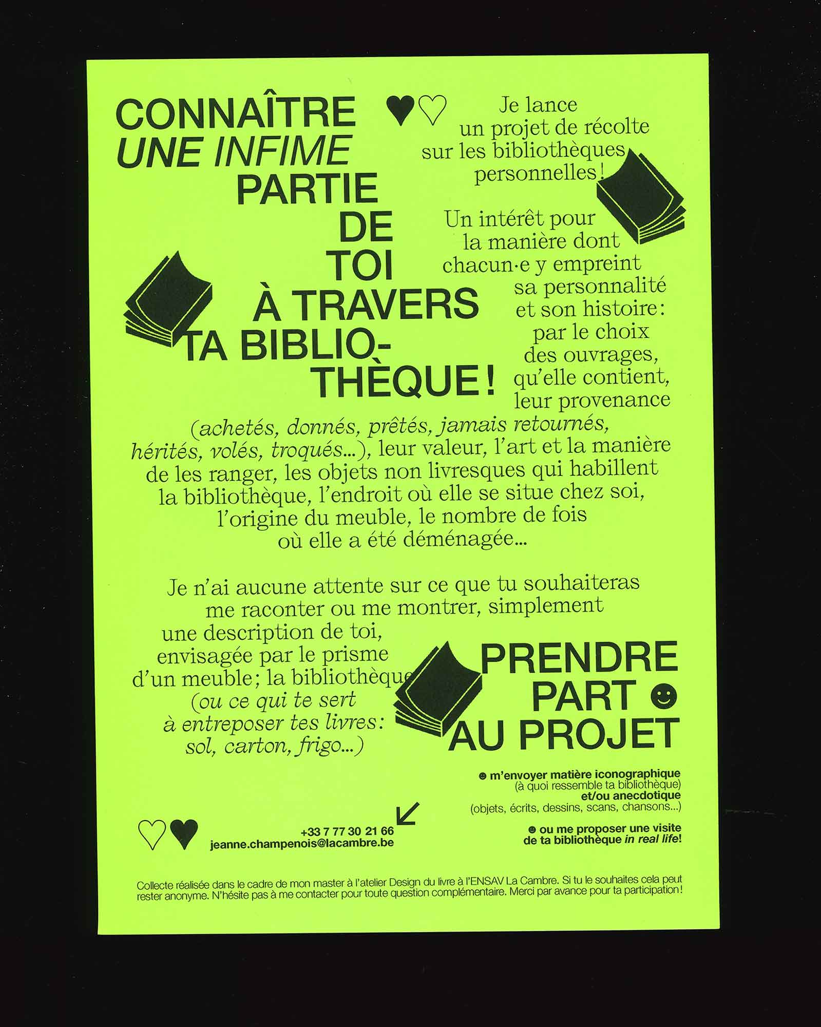 20 : Connaître une infime partie de toi à travers ta bibliothèque, flyer-invitation à prendre part au projet, 2023