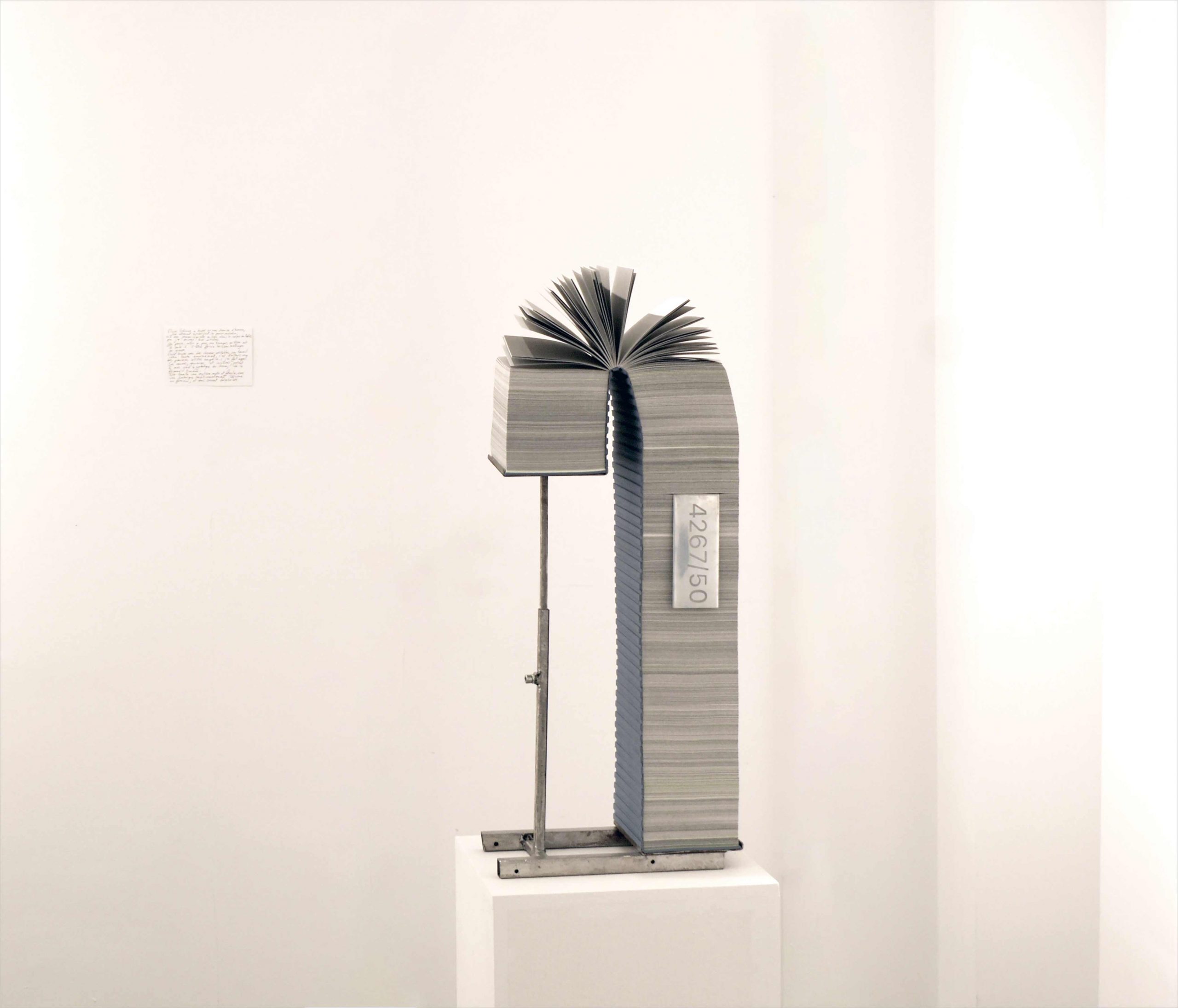JB : Vous faites surtout des livres à petit tirage (et à petit prix), ce qui semble les placer en dehors des circuits commerciaux habituels, qu’il s’agisse de la librairie ou de la galerie (selon que le projet penche vers le « livre » ou vers le « livre-objet »). Quels sont alors les circuits de diffusion que vous utilisez ou explorez ? Vous faites ainsi des « performances », mais de quel type ? Et existe-t-il la possibilité d’intégrer ces performances, a priori uniques, à des stratégies de diffusion plus stables ou récurrentes, voire plus commerciales ? Ou faut-il conclure que le livre tel vous que l’envisagez a glissé radicalement vers de tout autres territoires (la sculpture ou la performance par exemple) ?